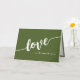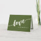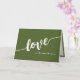 Cartão de saudação elegante de tendências, com um roteiro proeminente que soletra "LOVE" num fundo de cor rica. Simples mensagem personalizável de afeto. Disponível em versões de placa dobrada e plana. Perfeito para Dia de os namorados, Dia Mais Doce, aniversário de casamento ou qualquer dia!