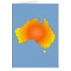 Uma versão ensolarada para o mapa australiano. Imagem em amarelo e laranja. Fundo azul em imagens selecionadas.