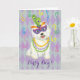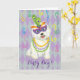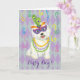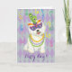 Cute West Highland White Terrier, vestido com máscara de pena festiva e miçangas, pronto para diversão em Mardi Gras ou em qualquer outro momento. presente de excelente para você e sua família e amigos amantes de Westie.