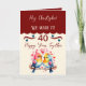 Celebrar 40 anos felizes juntamente com este doce cartão de aniversário de casamento rubi para o seu marido maravilhoso! Apresentando dois adoráveis beija-flores empoleirados lado a lado, este charmoso design captura a alegria de um amor que resistiu ao teste do tempo. Com a mensagem sincera "40 anos felizes juntos" na frente, é perfeita para compartilhar um sorriso e uma memória no seu dia especial. Quer você esteja relembrando o passado ou sonhando com o futuro, este cartão de aniversário bonito é uma maneira adorável de dizer "Tenho tanta sorte de ter você como meu marido" depois de todos esses anos. Um perfeito guardião para o seu 40º aniversário! Maroon / Azul