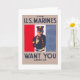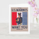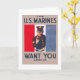 Da vasta coleção de Administrações de Projetos de Trabalho (WPA) e cartazes de Guerra de Zazzle — uma incrível variedade de imagens icônicas desenhadas para promover as artes, o bem-estar público e o patriotismo — Este cartão comemorativo apresenta um poster de recrutamento de fuzileiros dos EUA mostrando um retrato comprido da gestação marinha com a mão contra faixas vermelhas, brancas e azuis no fundo. Publicado entre 1914 e 1918.