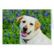 Cartão dentro de vazio com fotografia de um cão labrador amarelo no Texas bluebonnets