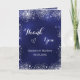 Um fundo azul-marinho incolor, decorado com falso brilho prateado. Dentro: 1rua das suas fotos, tamanho vertical. Sua nota de agradecimento. Traseiro: segundo das suas fotos, tamanho da paisagem.