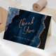 Este moderno cartões de agradecimentos de casamento apresenta uma marinho azul de aquarela agata de fundo com brilho sujo de ouro rosa. O texto personalizável contém as palavras "Obrigado" em um script de escrita manual cor-de-rosa. Adicione os nomes da noiva e do noivo abaixo.