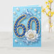 Comemore um aniversário de 60 anos com este cartão maravilhoso. O número 60 brilha com joias azuis tipo safira profundas, cada uma num quadro de ouro. As pérolas brancas, como as gotas luminosas de orvalho, estão espalhadas pela design. Uma bela rosa branca floresce abaixo, um símbolo eterno de novos começos. Totalmente personalizável para adicionar uma mensagem pessoal.