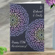 Cartão de aniversário azul de Marinho elegante com um livro azul gradiente chamado mandala e cinza de prata clara personalizada e expressão: Feliz 10º Aniversário".