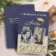 Cartão de Graduação de Parabéns de Foto Azul-Marinho 2 Rustic. Boné de formatura e texto na frente. bege russo e fundo azul escuro. Adicione 2 fotos na frente - você pode adicionar fotos antes e depois. Adicione a sua mensagem no verso.