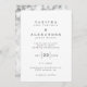 Um convite de casamento clássico monocromático que se apresenta sobre a tendência da mármore e texto elegante para a combinação perfeita de moderno e eterno.