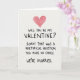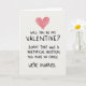 This Valentine's Day card features a hand-painted pink heart floating near the top, with soft brush marks that look like watercolor. The background is plain white with a light paper texture, keeping all the attention on the message. Under the heart, the text is written in slightly uneven black, hand-lettered block-style writing. The first line reads, “WILL YOU BE MY VALENTINE?” and it sits just below the heart, centered on the card. Beneath that, it continues with, “SORRY THAT WAS A RHETORICAL QUESTION. YOU HAVE NO CHOICE. WE'RE MARRIED.” The mix of sweet and funny feels like a loving inside joke between partners, making it great for romance or a longtime relationship ❤️