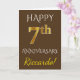 Cartão Marrom, Dourado Falso 7º Aniversário de Casamento