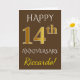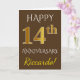 Cartão Marrom, Ouro Falso 14º Aniversário de Casamento +