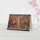 Mary e seu filho flertados por arcanjos, apóstolos e um Santo, arte ortodoxa etíope do século 15 honrando o nascimento do Cristo. Este maravilhoso cartão de saudação cristão de Natal oferece uma perspectiva única sobre as origens sagradas do Natal. O texto do interior diz "Desejando-lhe a época de Natal mais abençoada". Um cartão de Natal religioso cristão perfeito para familiares, amigos e membros da igreja.