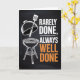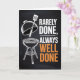A bold and rustic card for the man who loves to grill. Featuring a silhouette of a steak and grilling tools over a chalkboard-style background with orange and red "flame" accents. The text reads "REARELY DONE, ALWAYS WELL DONE".