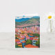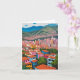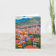 Este cartão apresenta uma pintura colorida de óleo de Medellín, na Colômbia.