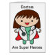 Médicos são trabalhadores duros! Deixe a médica na sua vida saber o quanto é apreciada com o cartão de dia deste médico que tem uma médica a vestir a roupa de um médico com estetoscópio e capa vermelha! O texto do cobrir diz, "Médicos são Super Heróis", mas pode ser mudado e personalizado para ajustado de suas necessidades! O texto da placa de saudação do dentro também pode ser personalizado e alterado para ajustado das suas necessidades!