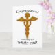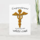 Ganhar o seu casaco branco é um ponto muito especial e importante na vida do estudante no seu corpo. Este cartão é perfeitamente personalizável com o nome e a escola! O símbolo médico tem o 3º símbolo. Cartão perfeito para enviar a alguém que ganhou seu casaco branco!