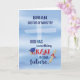Felicite o homem ou a mulher pela sua conquista como Doutor do Ministério. Um fundo com aspecto aquoso em azul claro do céu melhora uma cruz branca macia. As palavras que Deus tem algo excelente no seu futuro, são escritas no fundo de uma maneira estilhaçada. Personalize o cartão com o nome da pessoa para um cartão de graduação de manutenção do excelente!