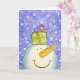 Envie alegria natalina com este cartão MeEncora com um boneco de neve carregando presentes na cabeça! Adequado para o Natal ou Hanukkah, o interior apresenta a feliz mensagem "Que sua casa seja preenchida com risadas, amor, paz... e muitos presentes!" Minha aquarela original sem filtros.