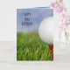 Feche a bola branca de golfe no tênis vermelho na grama para feliz aniversário. A idade na bola de golfe pode ser editada.