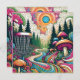 Desejo-te o melhor aniversário ao par. O cartão de aniversário do Disk Golf para ela. Um campo de golfe colorido único em um campo de cogumelos retrorreflectores, pinheiros, nuvens giratórias coloridas, luz do sol em cores antigas como azul, verde, rosa e laranja.
