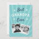 Celebre um vovô amado nesta Dia de os pais com este cartão com fotos legal que mostra duas fotos favoritas de seus netos com a frase "melhor vovô de todos os tempos" em letras brancas e azuis em um fundo aqua. Adicione uma mensagem pré-impressa personalizada ao lado inverso.