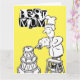 Criado para a melhor Mãe que há! Cartão para Mãe. A ilustração mostra um Criador de Bolo Decorando um Bolo Gigante enquanto subia um carregador. Saudações para a melhor Mãe. Fundo amarelo.
