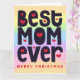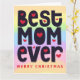 Diga a sua mãe como ela é especial nesta temporada de férias junto com seus desejos de Natal! Esta design tipográfica tem a Melhor Mãe de sempre em letras grandes e engraçadas com motivos cardíacos contra um pano de fundo colorido do arco-íris na frente. Dentro, você pode personalizar o dentro de texto para sua própria saudação.