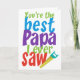 Tem o melhor Papai do mundo? Este fabuloso design 'Você é o Melhor Papai que Eu Já Vi' fará com que ele saiba. Perfeito para o aniversário dele ou Dia dos Pais. Personalize com sua própria mensagem para um cartão de felicitações personalizado. Tipografia moderna e brilhante.