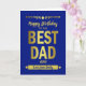 Uma placa de melhor Pai minimalista com design de tipografia de letras de ouro metálicas em fundo azul. Um ótimo design ideal para qualquer pai. Personalizar com o evento e depois personalizar com um nome. A cor de fundo pode ser alterada se necessário. Excelente para aniversários e Dias de os pais.