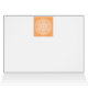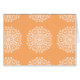 Esta mandala branca senta-se sobre um fundo cor de laranja claro. As cores são alegres e enérgicas. Parte da coleção Mola Mandala.