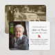 Cartões memoriais em tributo após a morte de um ente querido apresentam uma foto e tipografia clássica em tributo e no verso há uma foto adicional. Um pequeno cardeal vermelho divide o texto. Eles podem ser dados a amigos e familiares durante um velório ou enviados por correio para comemorar o aniversário da morte de um ente querido.