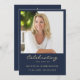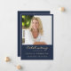 Este simples cartão memorial pode ser entregue como guardião numa Celebração da Vida ou num serviço funerário ou enviado como homenagem especial aos que não puderam estar presentes. Design apresenta um modelo de fotografia com uma tipografia elegante de script dourado num fundo azul clássico. Personalize este cartão com uma fotografia do seu falecido falecido nome, datas e a sua escolha de oração ou poema no verso do cartão. Fácil de personalizar.
