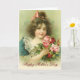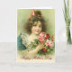 Cartão Menina com Dia de as mães de Rosas Rosa