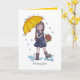 Cartão Menina Com Guarda-Chuva Amarelo Em Aquarela
