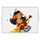 Desenhos animados bonitos do vintage de uma menina de cabelo preta na saia de grama que joga um ukulele.