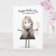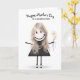 Linda menina de palitinho com cabelo, vestido de bolinhas, colar de pérolas, tênis e segurando um buquê de margaridas em fundo branco para a Mamãe no Dia das Mães.