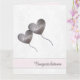 Parabéns de Natal rosa e roxo para pais com gêmeos bebês. A design mostra balões em forma de coração no céu. Cada balão pode ser personalizado para os nomes dos gêmeos e mensagens que o dentro também pode ser personalizado. Um cartão extra moderno que pode ser dado pela família, amigos ou padrinhos. Outros tamanhos neste design também estão disponíveis.