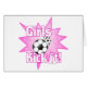 Garotas jogam no campo de futebol! Bonito brilho rosa e explosões coloridas com bolas de futebol. Camisa de futebol de Excelente bling para meninas.