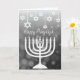 Estrelas de Davi pretas e brancas e menorá de Feliz Hanukkah cartão personalizado.