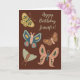 Este cartão bonito é perfeito para aniversários ou qualquer ocasião, uma vez que tanto a mensagem na frente como a mensagem no dentro estão prontas para serem personalizadas com o seu próprio texto. Este cartão apresenta ilustrações do estilo de arte folk de mariposas em cores de terra quente de marrom, rosa, amarelo, verde e azul contra um fundo marrom rico.