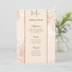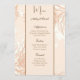 Este cartão de cardápio de casamento é mostrado no papel básico em um adorável impressão floral. Script e texto padrão em cores de tom marrom. Personalize clicando no botão personalizar, procure à direita e encontre as caixas apropriadas para alterar as informações. faça o stock da imagem freepik.com