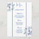 Este cartão de cardápio de casamento é mostrado no papel básico em um adorável impressão floral azul. Script e texto padrão em uma cor azul. Personalize clicando no botão personalizar, procure à direita e encontre as caixas apropriadas para alterar as informações. faça o stock da imagem freepik.com
