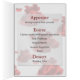 Um menu elegante do casamento que mostra as pétalas de rosa vermelha. Customizável: introduza seu texto para um grupo verdadeiramente original. Projetado perto: Lorie Davis
