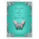 Cartão Menu Placa de Janto Silver Teal Blue Butterfly