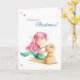 Cartão de Natal bonito e único para amantes da sereia. O sentimento diz "Sereia Natal!" embora você possa personalizá-lo se quiser. A imagem representa uma sereia com cabelo rosa e cauda verde fazer um "boneco de neve" com areia, um homem de areia. Ilustrada e projetada por Patricia Alvarez.
