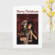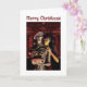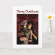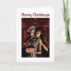 Cartão Merry Christmas. Funny skeleton with woman