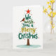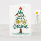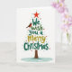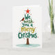 This lovely card showcases a mix of holiday text and classic Christmas symbols, all coming together to create a beautiful Christmas tree. The background is a pure white, giving a magical feel to the design. In the center, the words "We wish you a Merry Christmas" are artfully arranged to form the tree's shape, with a bright red star on top. The colors used are traditional holiday shades, with deep green, bright gold, and hints of red and blue throughout.