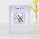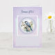 Cette carte délicate met en scène une jolie mésange entourée de fleurs champêtres, comme un petit tableau de nature apaisante. Les tons lilas et bleu tendre créent une atmosphère douce, lumineuse et pleine de poésie.