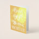 The front of this formal and luxurious birthday-themed foil greeting card design features the message “Happy 99th Birthday,” in fancy script style text. The inside has a personalized birthday greeting message, or could perhaps be cleared and left blank if a message is to be written by hand instead. A lavish, customized birthday greeting card like this might be used to acknowledge somebody’s ninety-ninth birthday. [~Z0000555]