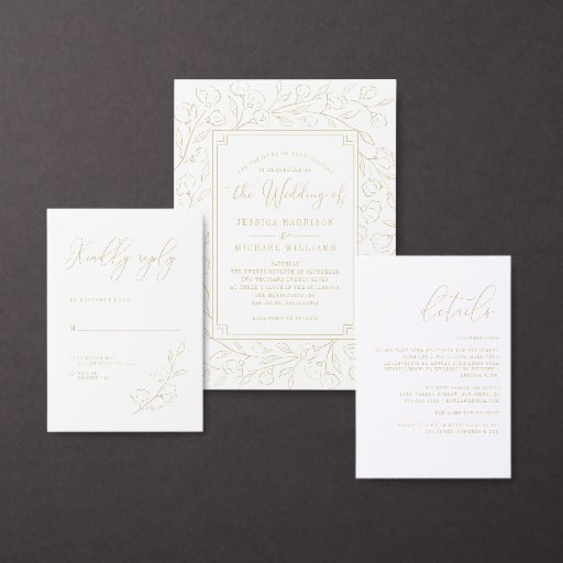 Cartão Metalizado Casamento Dourado Clássico Elegante Monograma Bran